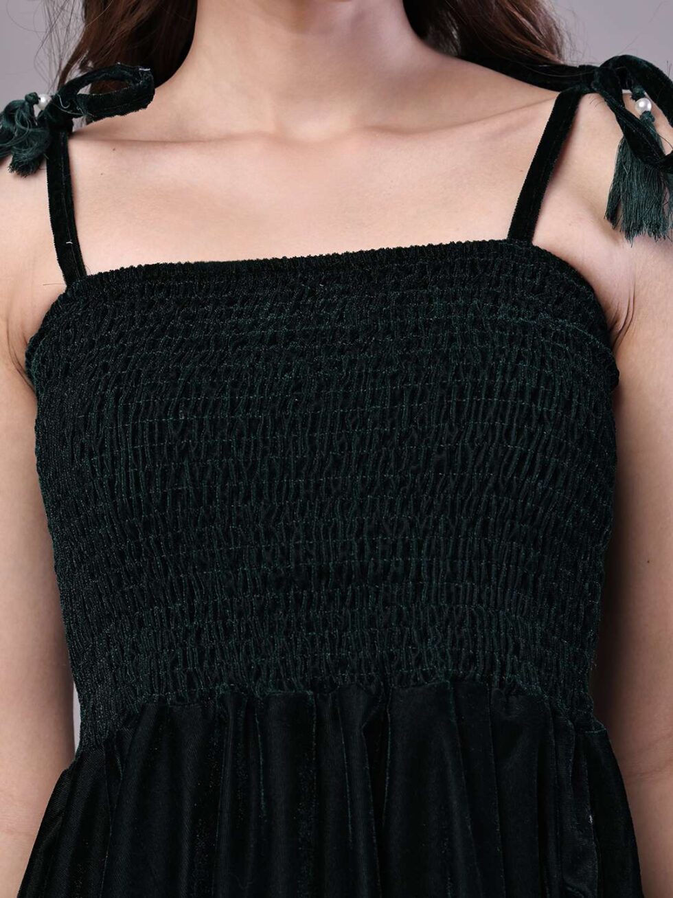 Be the first to review “Women’s Bottle Green Junglee Pattern Velvet Handkerchief Hem Dress Midi Dresses”